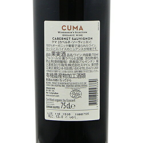 《2.2万円以上で送料無料》 クマ オーガニック カベルネ ソーヴィニヨン 2024 Cuma Organic Cabernet Sauvignon 赤ワイン ア...