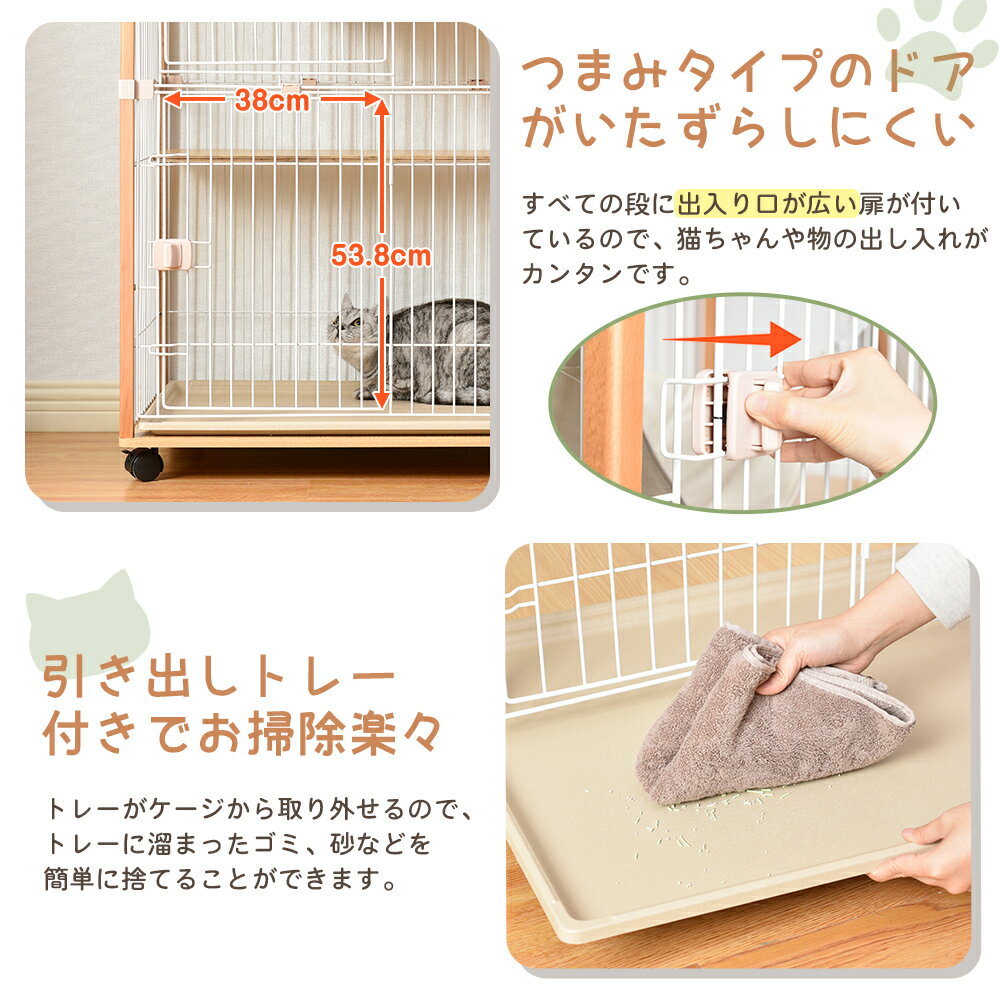 【P5倍+300円クーポン!20時〜】猫 ケージ 2段 キャットケージ 木製フレーム ハンモック付 広々 猫 キャスター付 猫ゲージ お...